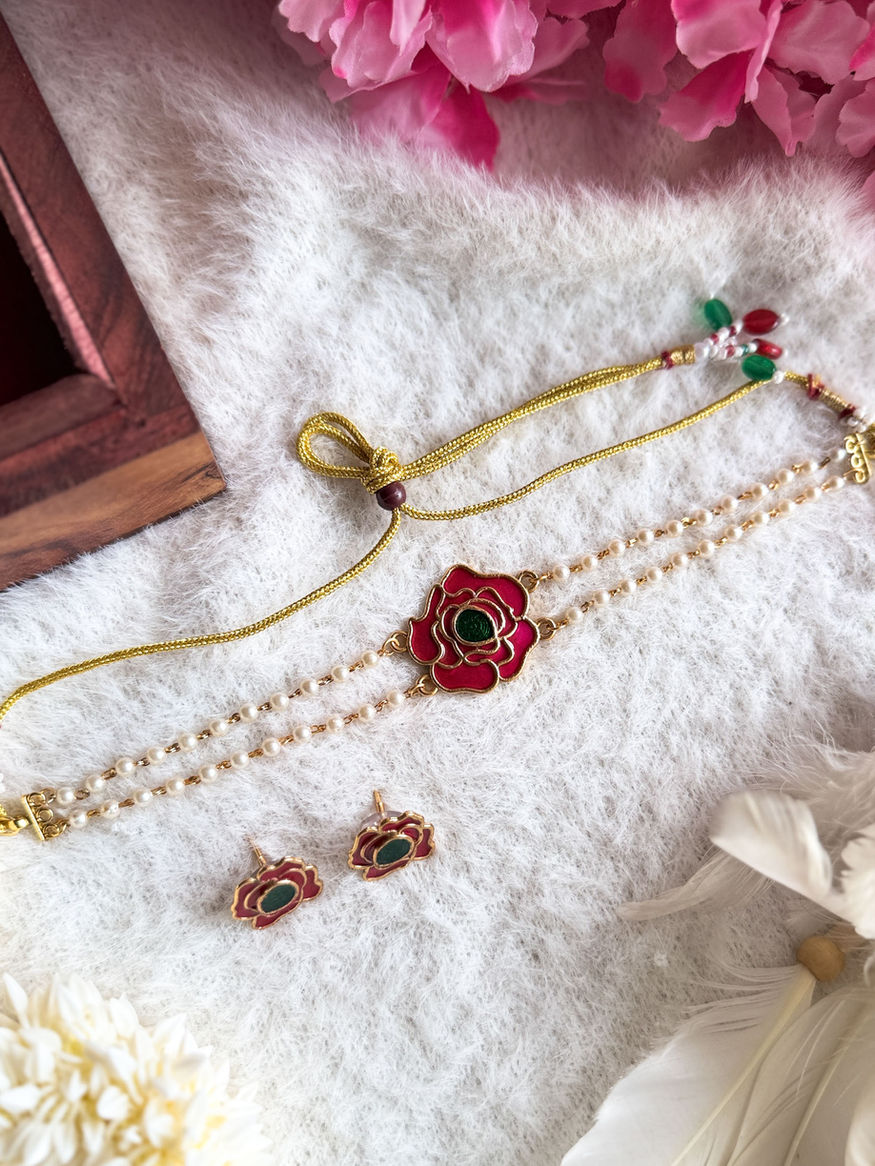 A stunning red gulab choker inspired by the beauty of roses, adding timeless elegance to both traditional and modern looks.